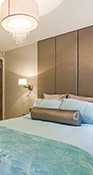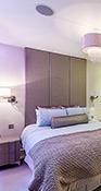 Diverse lighting opportunities in each room give a multitude of options for ambient and mood lighting. Feature lights above beds and architectural elements and soft subdued light in all colours are available in each room. Bespoke engraved switch plates make using all lighting options simple yet beautiful.