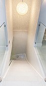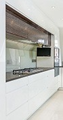 For a contemporary edge, glass is used throughout on stairwells splash-backs, bathrooms and a glass elevator in the centre of the building. Stainless steel is a unique feature along the communal staircase giving an urban feel as it beautifully plays with light.